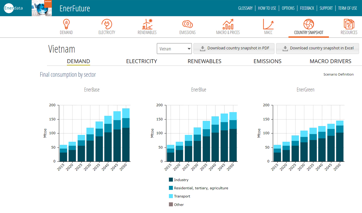 The series contained in this interface are a short excerpt of the data available in Enerdata‘s EnerFuture service. The complete service provides: